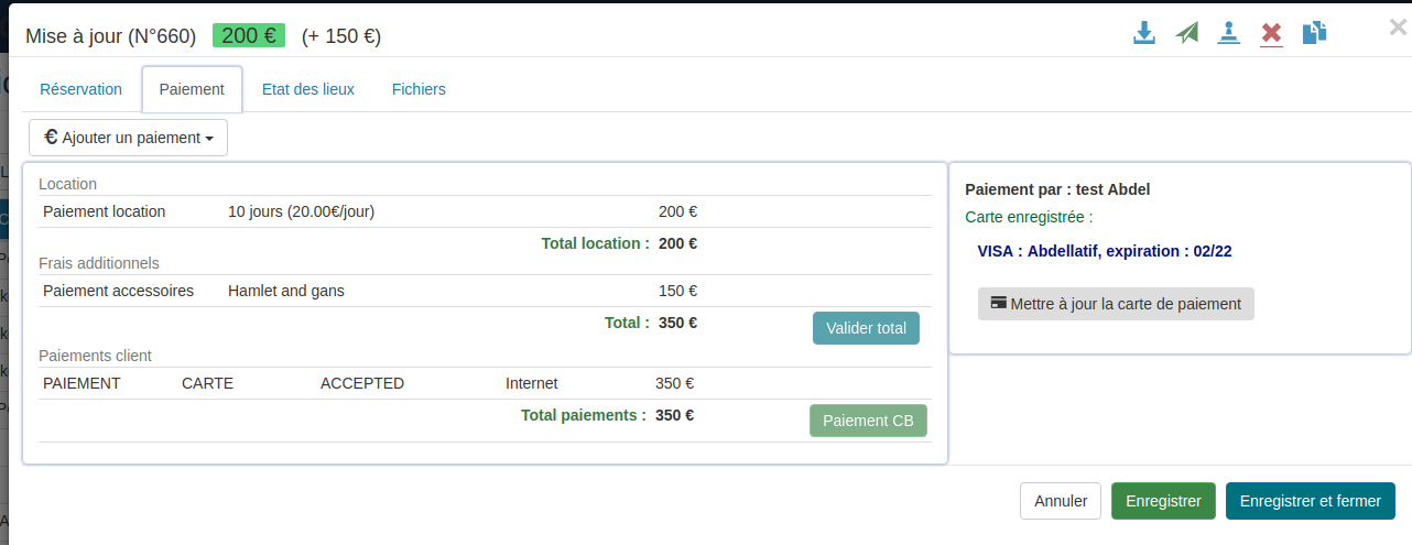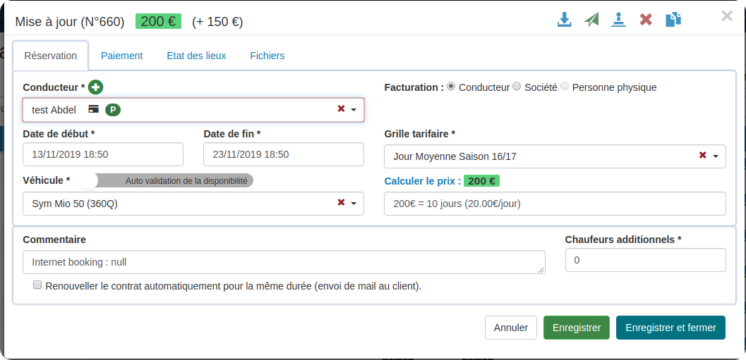 Reservation et paiement direct par le client, renouvellement automatique des locations.