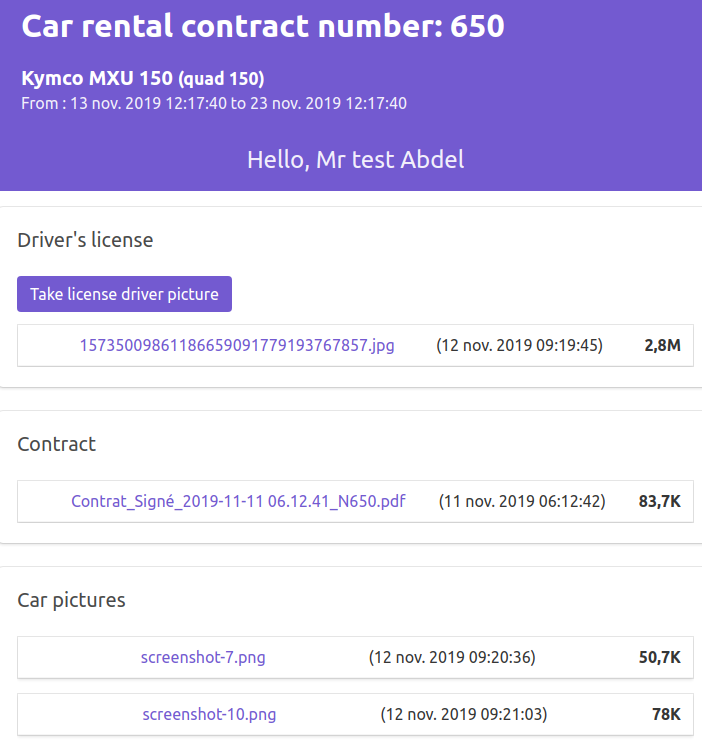 Tous les documents liés à la location sont stockés et gérés par CarLoc